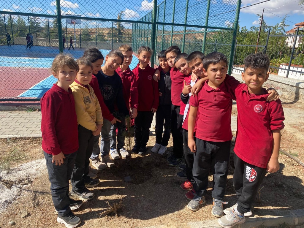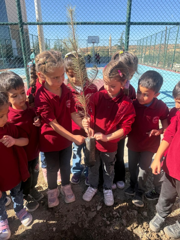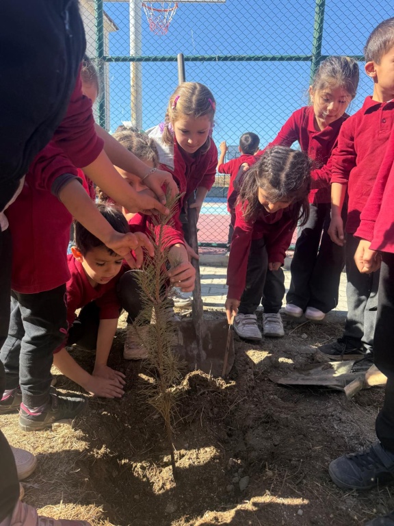 MİNİK ELLERLE MİNİK FİDANLAR TOPRAKLA BULUŞUYOR.